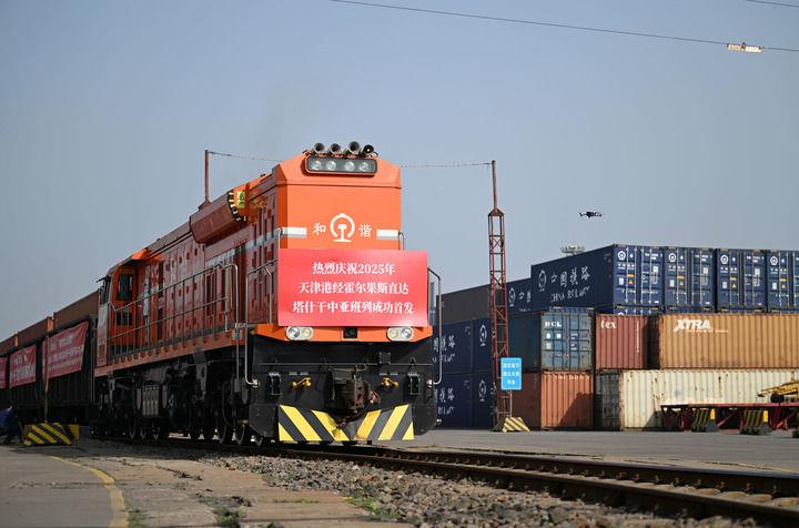 2025年5月20日,2025年首列天津港经霍尔果斯直达塔什干的中亚班列从天津港物捷三堆场发车。
