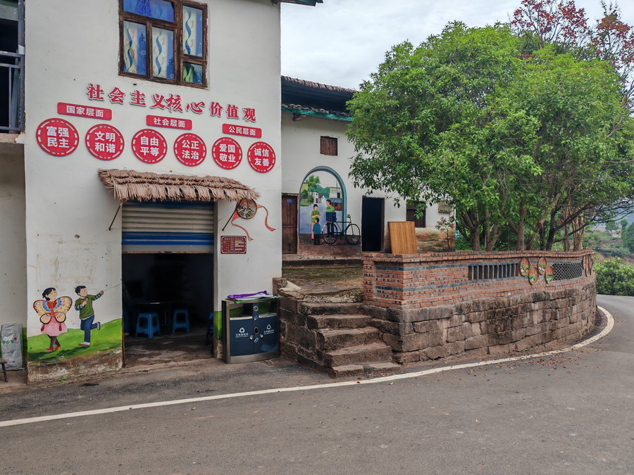 凤凰村里的民居文化墙。