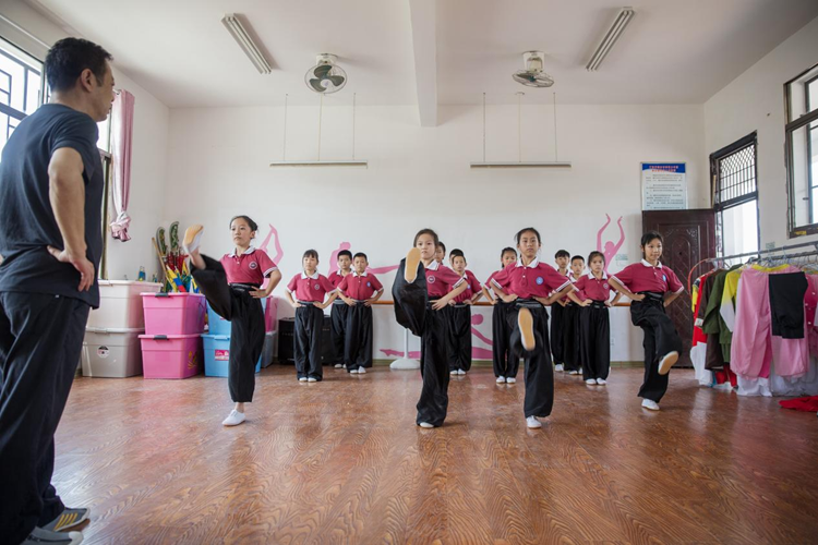 为了丰富校园文化活动,汀泗桥镇小学从2014年开始探索创建了农村少年宫,开设了戏曲、篮球、音乐、美术、舞蹈等十余个社团,为农村孩子展示才艺、健康成长搭建舞台。“2017年,我们把戏曲引入课堂,聘请楚剧团退休资深演员教孩子们练习戏曲基本功,带着孩子们在唱念做打、一招一式中领略中国国粹的魅力。”汀泗桥镇小学校长说。