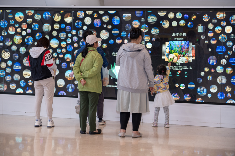 9月24日,游客沉浸式体验国家海洋博物馆的科普展示。新华网 钟奕 摄