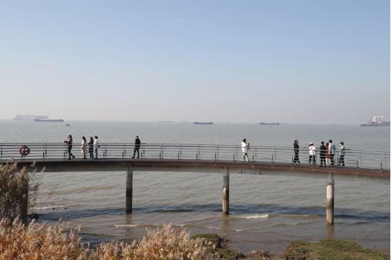 “万里昆仑谁凿破,无边波浪拍天来。”市民站在狼山国家森林公园的观景台上远望,烟波浩渺、碧波万顷,往来商船络绎不绝。依稀间,犹见当年胜景。
